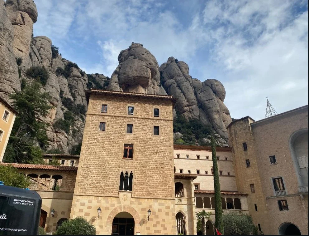 Landing in Barcelona felt so unreal. I had to take a moment just to stand still and find my bearings. Barcelona. BARCELONA!!! A year ago, I seriously thought it was totally out of the question to attend the school trip that was announced in early 2024. There were so many memorable events in Barcelona- spending hours wandering the streets, biking around town, viewing historical monuments, and exploring plazas.. I remember even going to a chocolate museum and seeing a chicken little statue!! I got to document my trip, too, with tons of souvenirs and memories. First, I remember visiting the Cascada monumental and getting some great photos. I also remember the weather there specifically- since we were at sea level, the humidity was such a nice change from how Colorado is, and it was honestly such a nice change of pace. When we arrived at the hotel, I immediately noticed the scenery. There was a bunch of decor and nice furniture. There was a huge fish mural on the window, too.